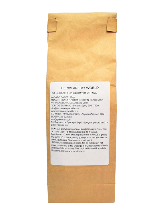 ΔΟΣΟΛΟΓΙΑ: 1 με 2 κουταλάκια βότανο, σε 1 φλιτζάνι του τσαγιού με νερό και πίνουμε 3 φορές την ημέρα. Αυτή η μέθοδος χρησιμοποιείται για πέταλα, άνθη, φύλλα και όλα τα αρωματικά βότανα.