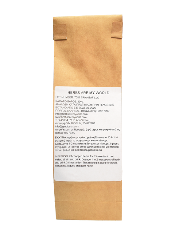 ΔΟΣΟΛΟΓΙΑ: 1 με 2 κουταλάκια βότανο, σε 1 φλιτζάνι του τσαγιού με νερό και πίνουμε 3 φορές την ημέρα. Αυτή η μέθοδος χρησιμοποιείται για πέταλα, άνθη, φύλλα και όλα τα αρωματικά βότανα.