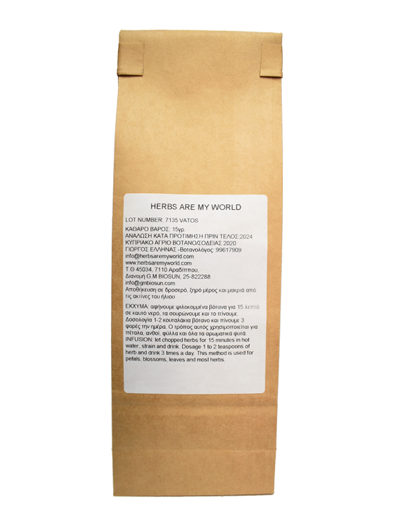 ΔΟΣΟΛΟΓΙΑ: 1 με 2 κουταλάκια βότανο, σε 1 φλιτζάνι του τσαγιού με νερό και πίνουμε 3 φορές την ημέρα. Αυτή η μέθοδος χρησιμοποιείται για πέταλα, άνθη, φύλλα και όλα τα αρωματικά βότανα.